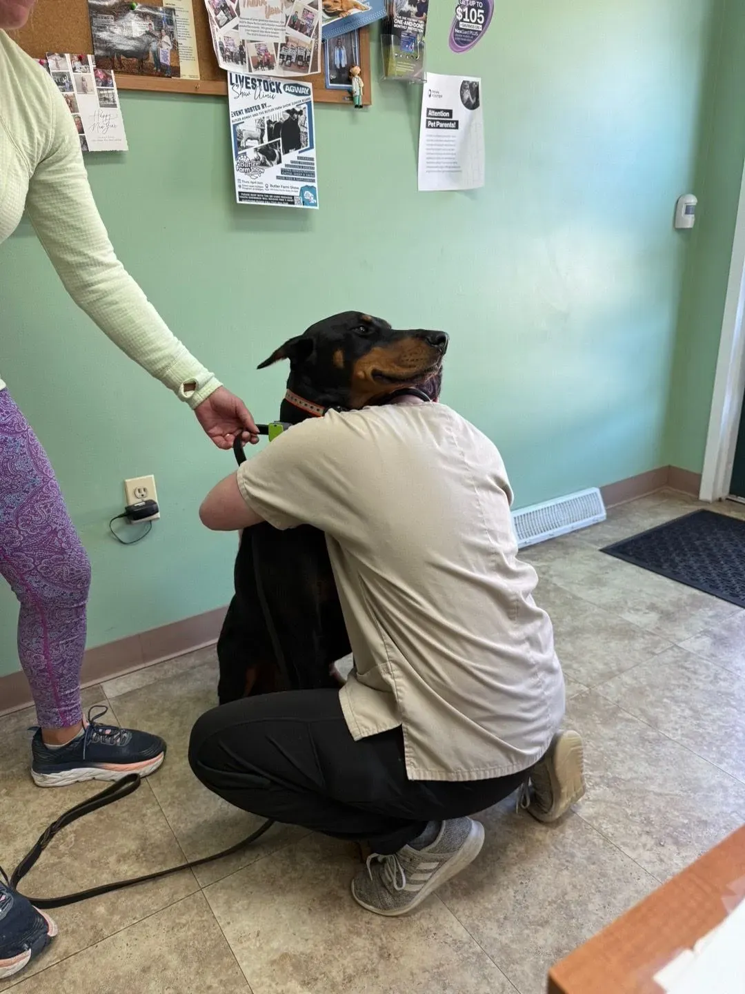 Happiness is healthy teeth! Schedule a dental check-up for your pet and learn about the many ways you can improve your pet's health by taking care of their dental hygiene. We offer samples - this cutie is taking home an Oravet dental chew sample!